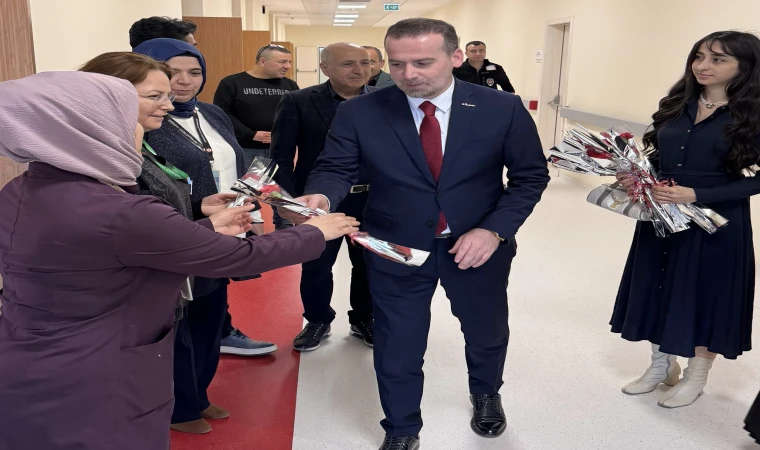Ziyaret kapsamında hastane çalışanlarına karanfil takdim eden MAGİNDER Başkanı Karademir, Başhekim Uzm. Dr. Abdullah Ercan’ı da makamında ziyaret ederek hem Tıp Bayramı’nı kutladı hem de yeni görevinde başarılar diledi.